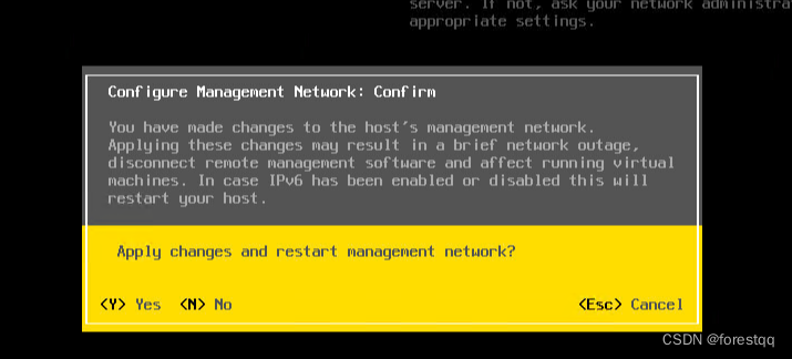 20、按ESC返回按Y确认管理网络配置(会自动重启管理网络)