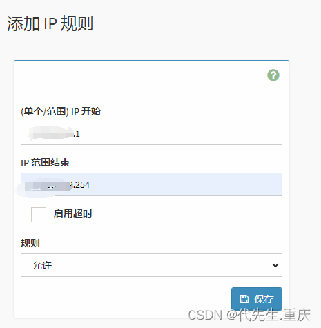 首先需要将当前登录的远程可信维护主机加入到白名单中,防止启用白名单后连接中断无法配置,点击IP地址防火墙规则,添加IP规则,添加主机IP,单个IP只需添加到IP开始中即可,规则选定为“允许”,如下图所示: