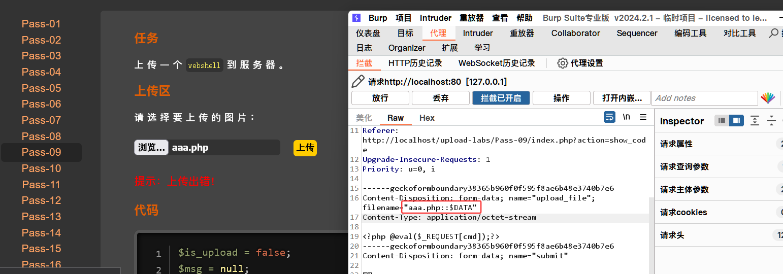 我们还是使用burp抓包改文件名,在文件名后面添加::$DATA。