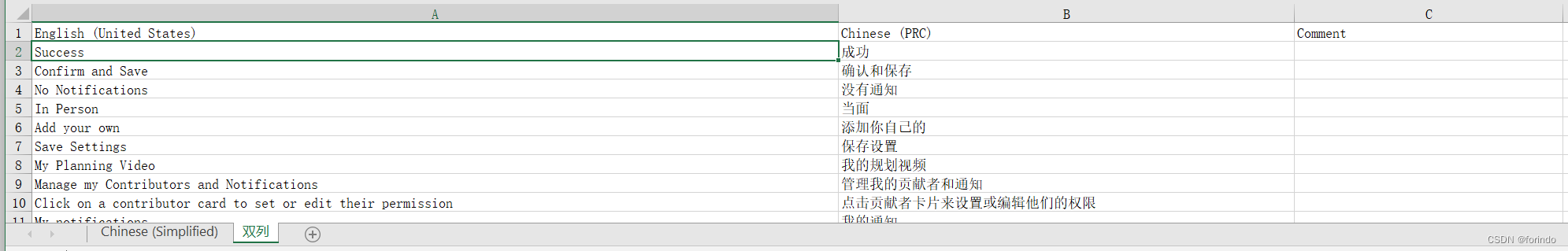 首先,在Excel中,点击左下角的带圆圈加号,添加一个表,可以命名为“双列”,将上面那个双语RTF复制粘贴到这个新表,像这样: