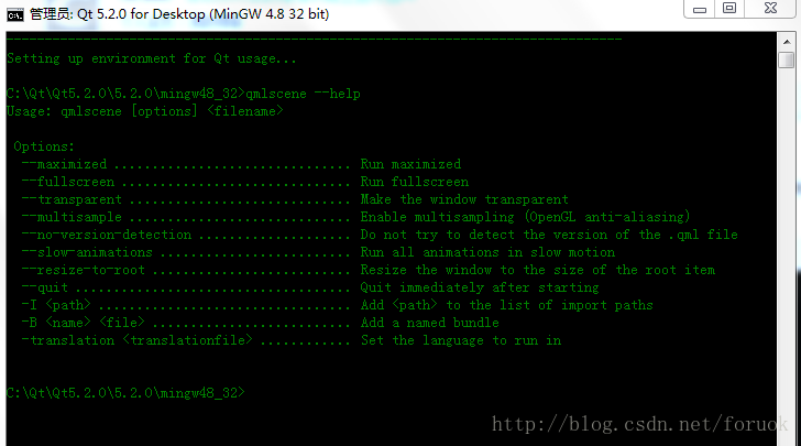 如果你想知道 qmlscene 工具的详细用法,请输入 qmlscene --help 命令。如图 3 :