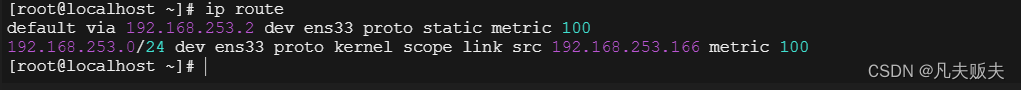 - 192.168.253.0/24 dev ens33 proto kernel scope link src 192.168.253.166 metric 100: