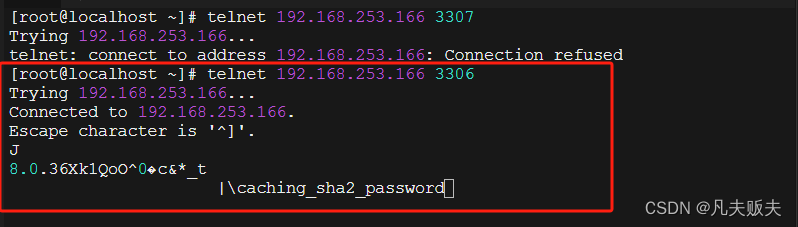 如果端口开放,将会显示连接成功的消息;如果端口关闭或被防火墙阻止,将会显示连接失败的消息。如图:3307端口是不通的,而3306端口是通的。