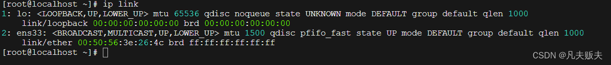 上述输出了两个网络接口的信息,一个是本地回环接口 lo,另一个是物理网络接口 ens33。