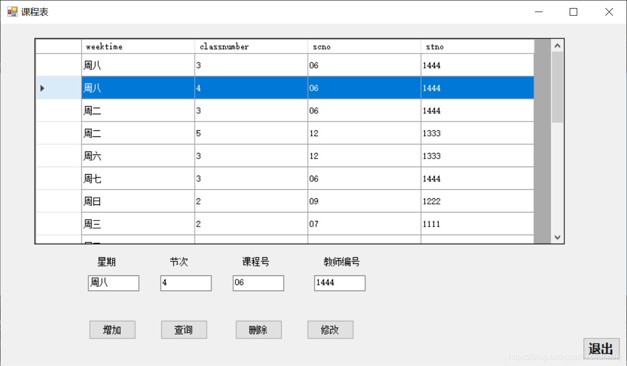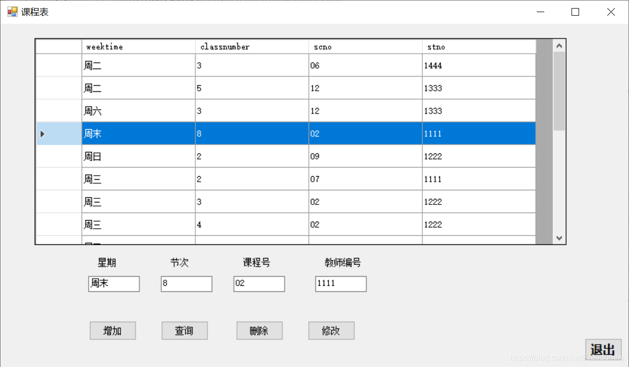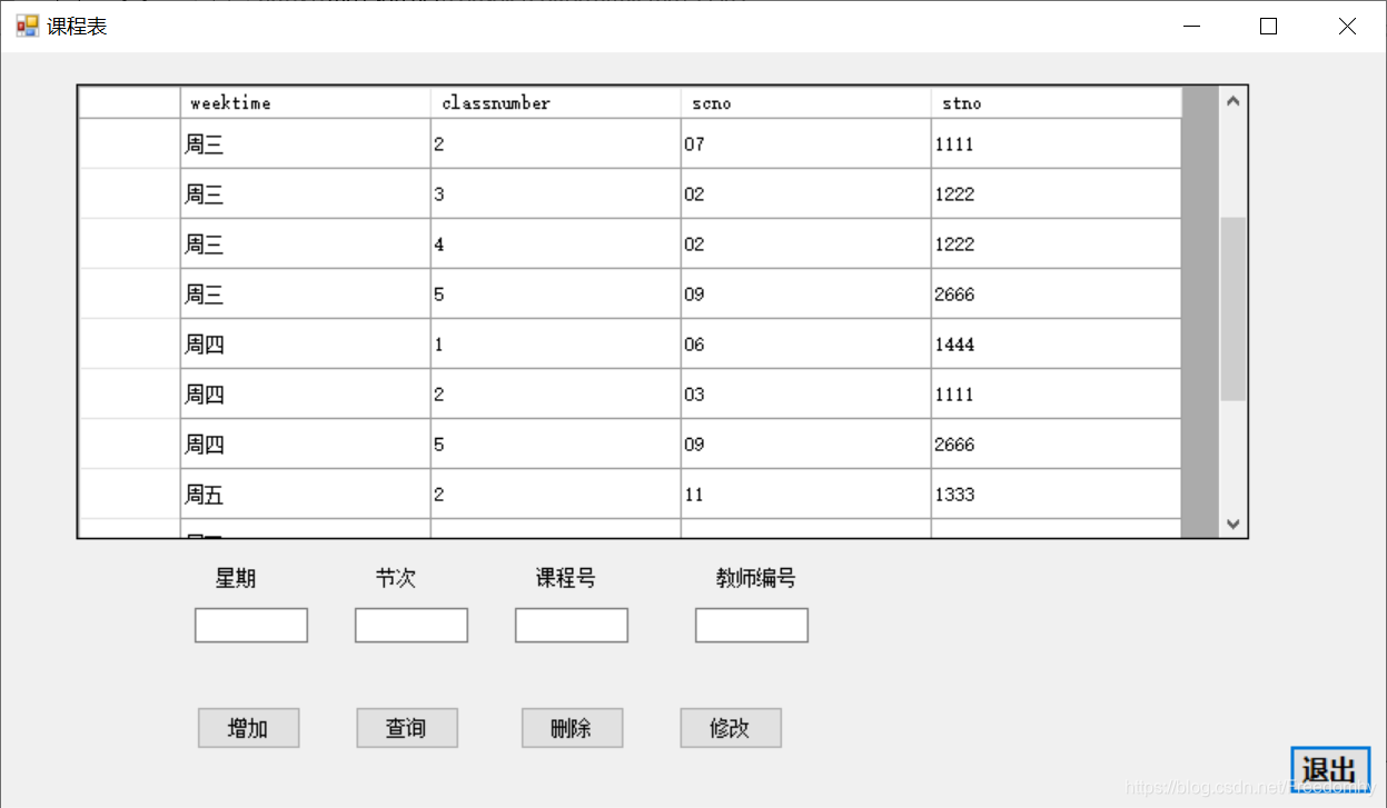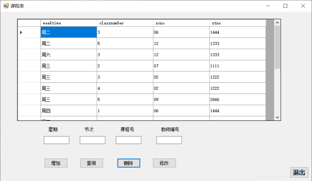 insert into clatime values('周四',2,'03','1111');