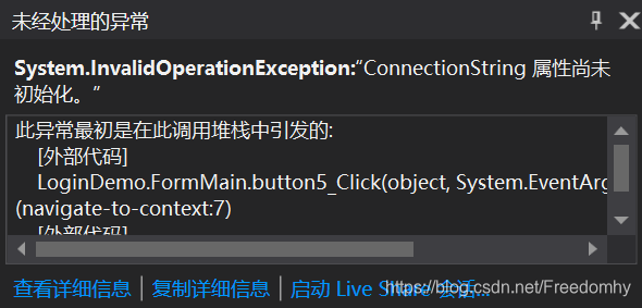 连接数据库的语句拉到了外面作为了公共实例化对象来使用,因此每次用完之后并没有重新实例化连接对象,所以finally中的dispose也就决定了con再次open时会报错。最后了发现老师的在查询部分也用了close,可能是当时讲了我没记清楚。。。