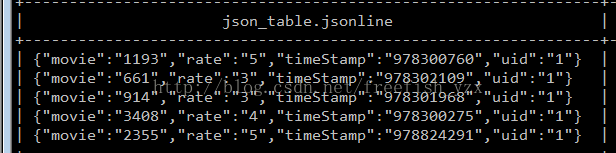 select get_json_object(jsonline, '$.movie') as movie from json_table limit 5;