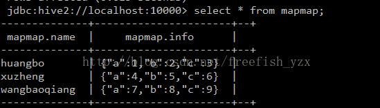 create table mapmap(name string, info map<string, int>) row format delimited fields terminated by "\t" collection items terminated by ":" map keys terminated by ",";