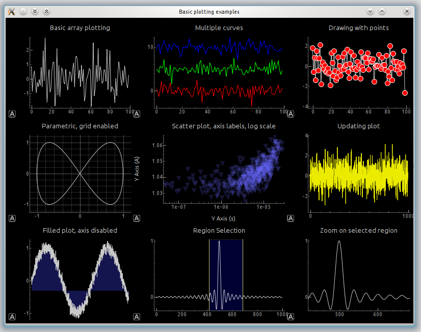 PyQtGraph被大量应用于Qt GUI平台(通过PyQt或PySide),因为它的高性能图形以及NumPy可用于大量数据处理。特别需要注意的是,PyQtGraph使用了Qt的GraphicsView框架,它本身是一个功能强大的图形系统,我们将优化和简化的语句应用到这个框架中,以最小的工作量实现数据可视化。