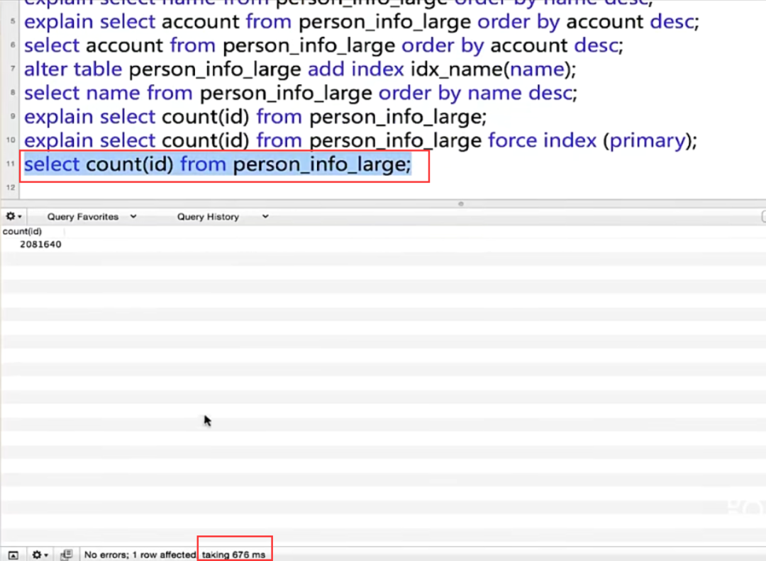 我们看一下优化器默认使用唯一索引大致执行时间676ms