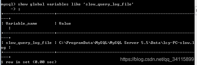 3.确定慢查询日志的文件名和路径