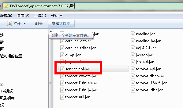 如我在Tomcat的安装目录:D:\Tomcat\apache-tomcat-7.0.37\lib 成功的找到了Httpservlet的jar包,