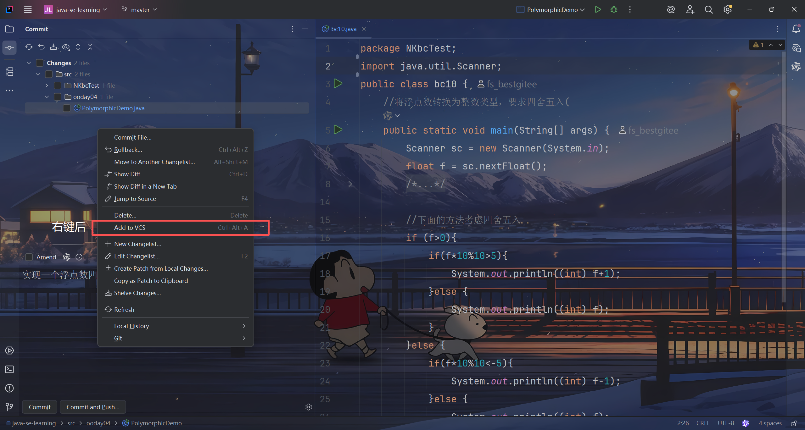 未勾选的文件可右键「Add to VCS」单独加入暂存区,如图所示: