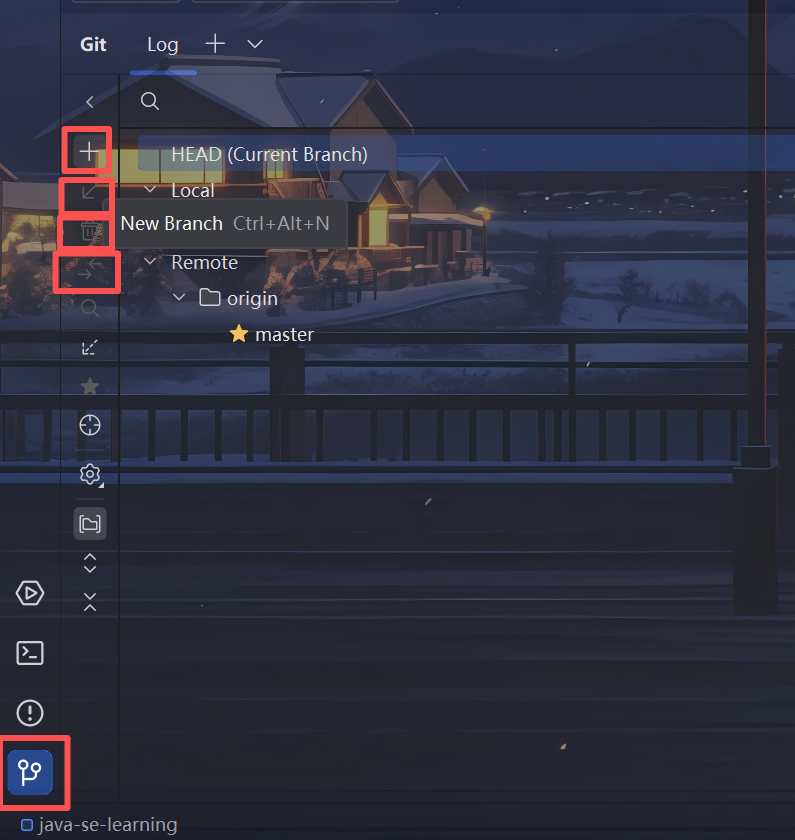 ③ 分支管理可视化:底部「Git」面板可查看当前分支,点击「New Branch」创建并切换分支(对应git checkout -b),「Checkout」切换分支,「Merge」合并指定分支;通过「VCS → Git → Branching and Merging」可完成分支删除、重命名等操作,冲突时会弹出可视化冲突解决界面,直观对比双方代码并选择保留内容,如图所示: