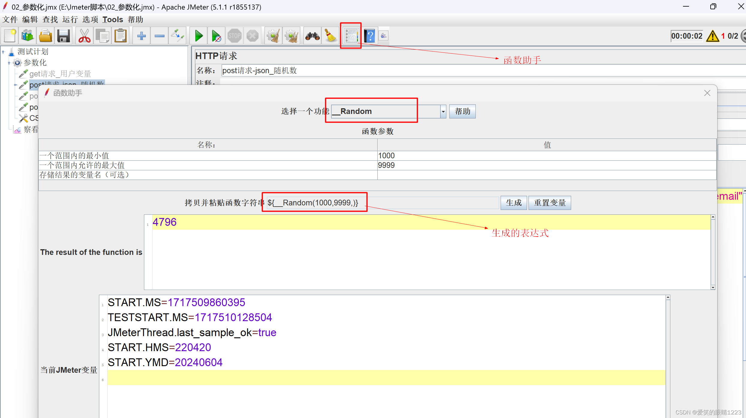 函数助手也是我们经常用于参数化的方式之一,可以选择随机数(_Random)或者随机字符串(_RandomString)通过生成随机数据来进行参数化。