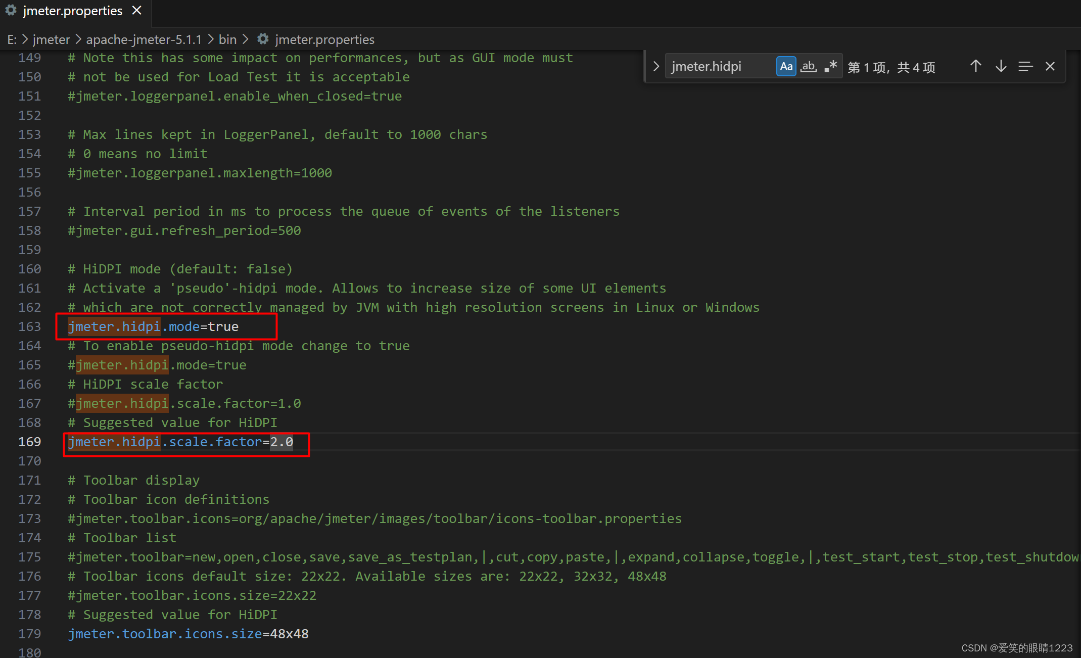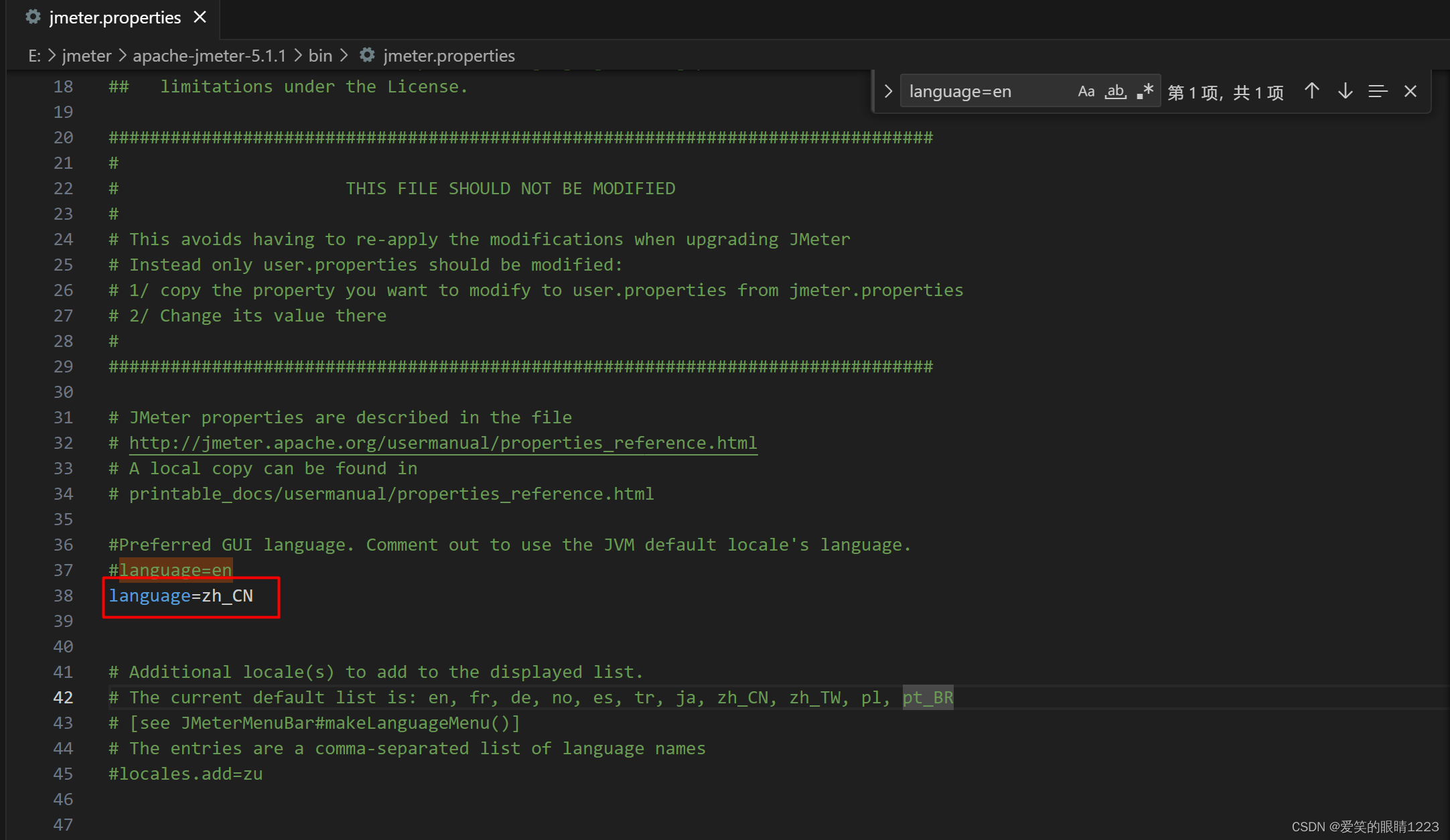 修改bin目录下的jmeter.properties文件 ,如下所示,修改成功后重启Jmeter发现页面已经菜单栏和编辑区都已经恢复正常。