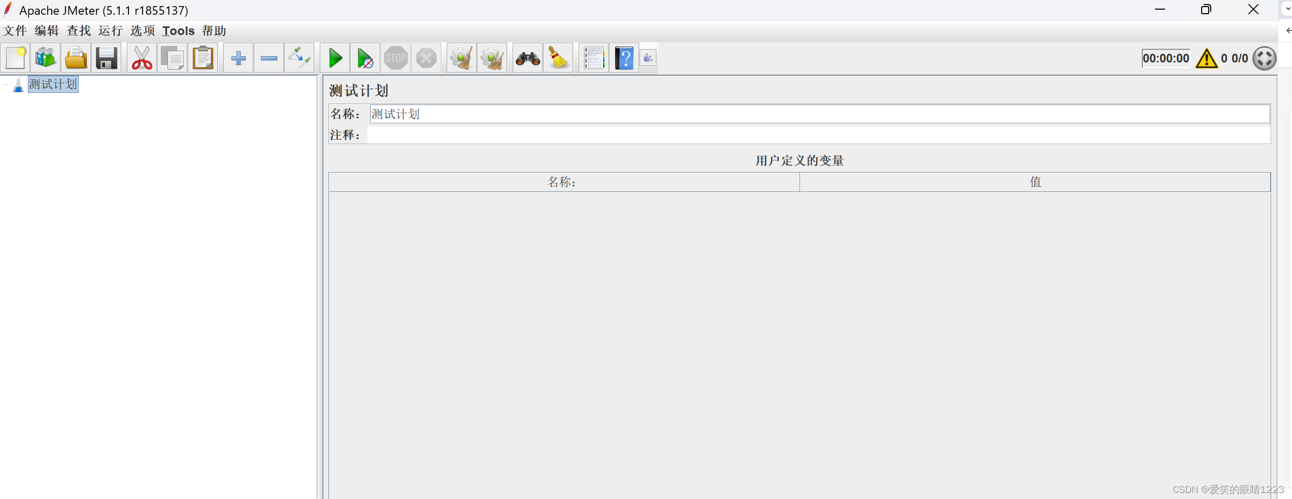 Jmeter在解压启动之后页面显示是英文,如果需要修改为中文,可以修改bin目录下的jmeter.properties文件,设置language=zh_CN,设置成功后,重启Jmeter就可以看到页面显示中文,如下图所示。