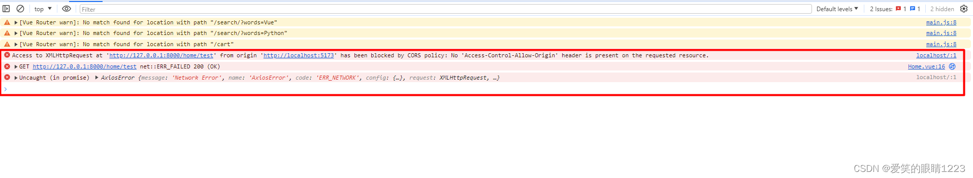 报错信息:localhost/:1 Access to XMLHttpRequest at 'http://127.0.0.1:8000/home/test' from origin 'http://localhost:5173' has been blocked by CORS policy: No 'Access-Control-Allow-Origin' header is present on the requested resource.