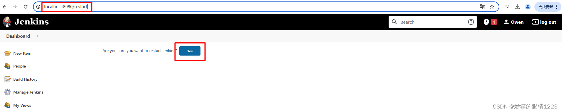 在端口修改好了之后,我们可以在地址栏输入:http://localhost:8080/restart (假如之前端口是8080),点击“yes”确认重启,重启成功后就可以用8081端口来进行访问了。