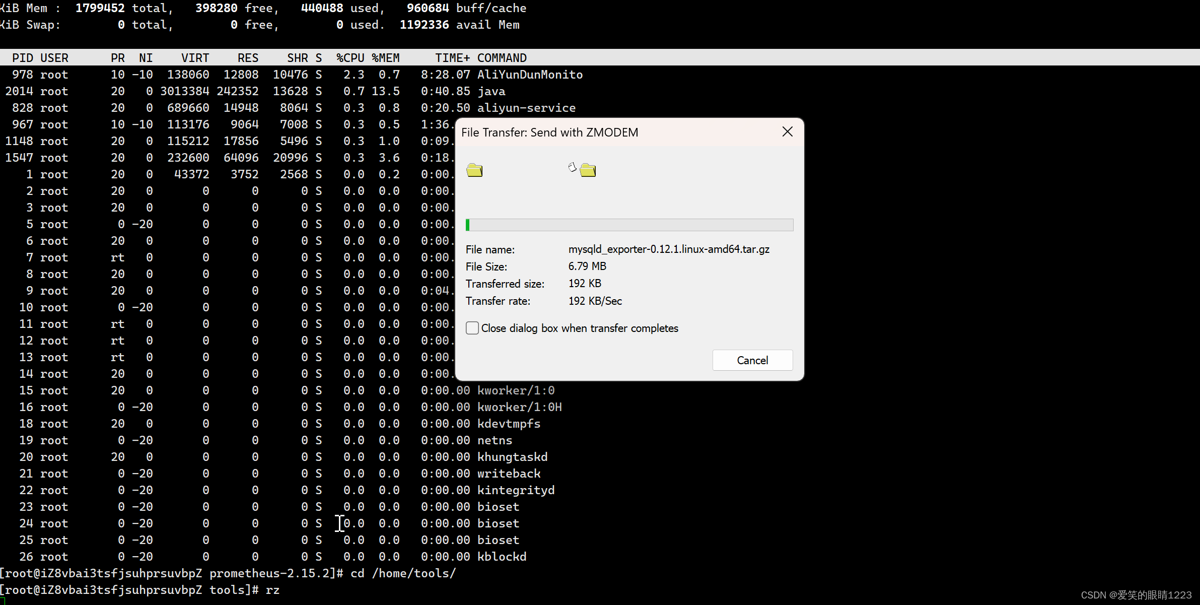 通过rz命令将安装包上传到任意目录,我这里是上传到了home/tools目录。