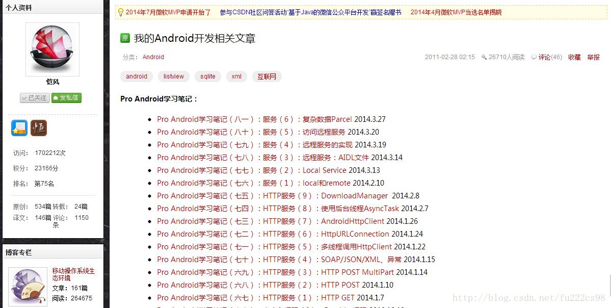 收集的几个大牛的博客,收集只是收集,但是确并没有实际的去看。这个是很不对滴,既然收藏了,就应该好好阅读,加深理解。