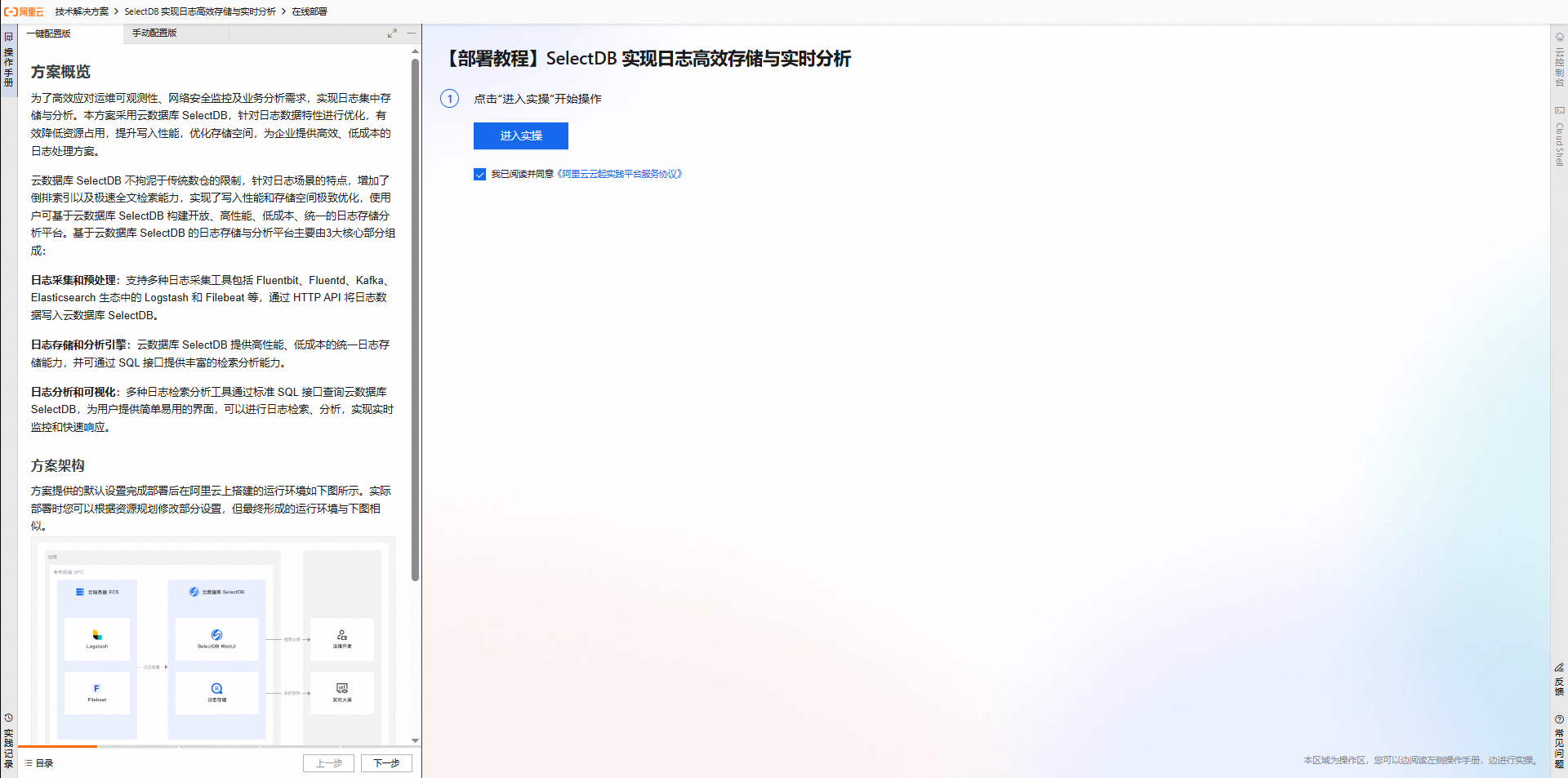 1、任务一:点击“去体验”进入解决方案页面,跟随“一键部署版”教程完成在线部署。