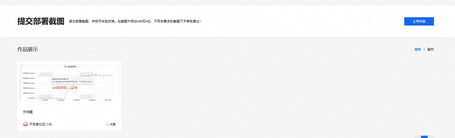 2、任务二:点击“立即上传”,云起实验完成后,上传验证结果截图,并给予体验反馈,作品通过审核即完成本任务。