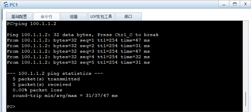 通过上面的输出,我们可以看到PC机都能够访问服务器,也就是说实验配置成功了
