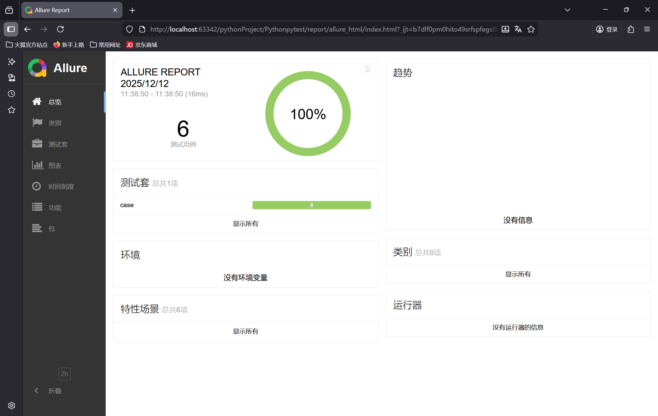 1、要考虑allure版本的兼容性,当前版本用的是:2.36.0。如果版本不兼容,可能会存在allure_result有数据,但是打开报告后,测试数据为:0的情况。