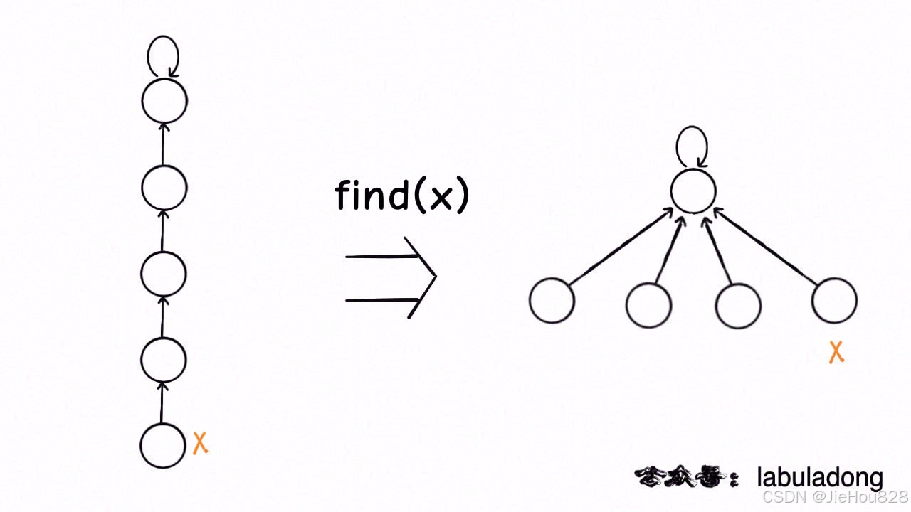 【find】的主要功能是从某个节点向上遍历到树的根节点,自然的我们可能会认为树的高度是【logN】,但这并不一定。【logN】的高度只存在于平衡二叉树,对于一般的树可能会出现极端不平衡的情况,使得【树】几乎退化成【链表】,树的高度最坏情况下可能变为【N】。