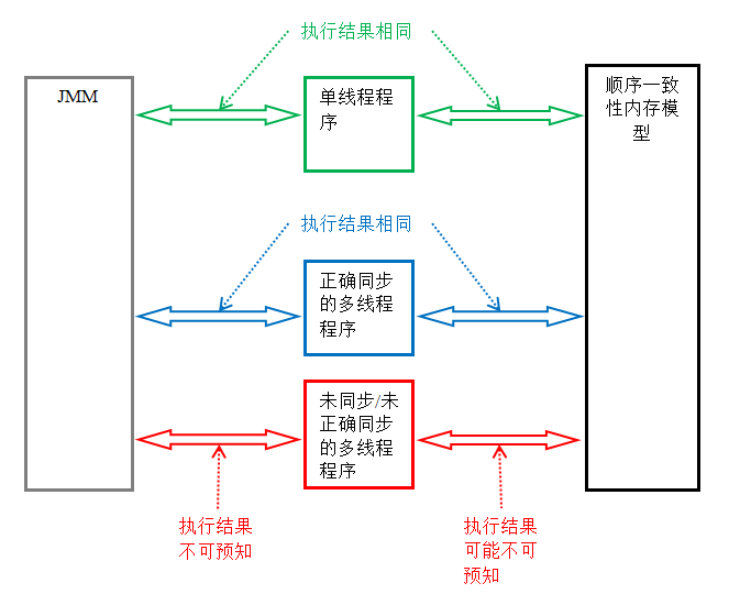 只要多线程程序是正确同步的,JMM保证该程序在任意的处理器平台上的执行结果,与该程序在顺序一致性内存模型中的执行结果一致。