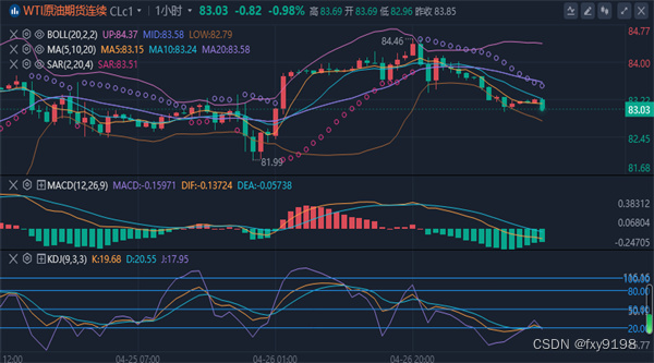 【原油行情分析】:原油日线来看,周初下探80.7附近测试支撑后原油走势转强,可以看出下方80.3关口支撑是非常强的,目前原油已经站上83上方,而且走势还是偏强,预计接下来还将继续上行,上方阻力看至86关口附近。四小时线来看,周初下探80.7附近后反弹至83.7附近,随后震荡调整,周四在82关口附近强势上行最高涨至83.8附近,目前油价运行在布林带上轨附近,KDJ金叉后向上发散运行,整体走势偏强。目前中东局势的不稳定性对原油起着支撑作用,欧佩克+最近的减产行动导致市场供应更加紧张,原油暂时很难跌下去,预计还将进一步上涨,因此本周操作上顺势做多为主。 综合来看,原油周一操作思路上建议以回踩低多为主,反弹高空为辅,上方短期关注85.0-85.5一线阻力,下方短期关注82.5-82.0一线支撑。