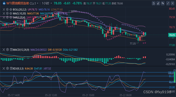 【原油消息面分析】:受市场疲软和降息希望下降影响,油价走低,5月22日讯,在市场疲软、美联储降息希望下降和地缘政治紧张局势缓和的背景下,油价下跌。澳新银行分析师在一份报告中表示,美国炼油厂的利润率大幅下降,该国的汽油需求正处于2020年以来的最低水平。美国最新原油库存数据显示,截至5月17日当周,美国原油库存增加250万桶,令市场感到意外。与此同时,美联储官员的谨慎言论也降低了降息的希望,引发市场担心更长时间的高利率将拖累需求。