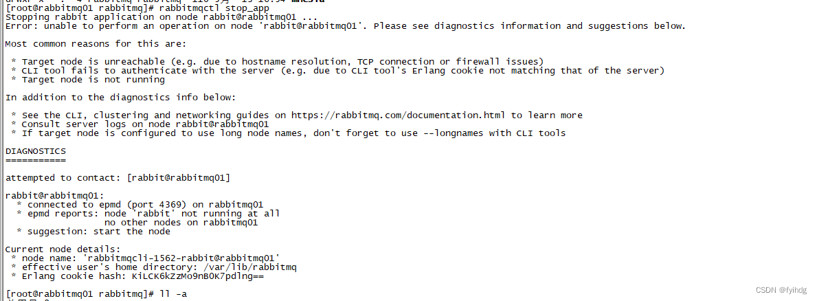 [root@rabbitmq01 rabbitmq]# rabbitmqctl stop_app