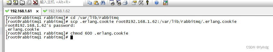 scp .erlang.cookie root@192.168.1.62:/var/lib/rabbitmq/.erlang.cookie