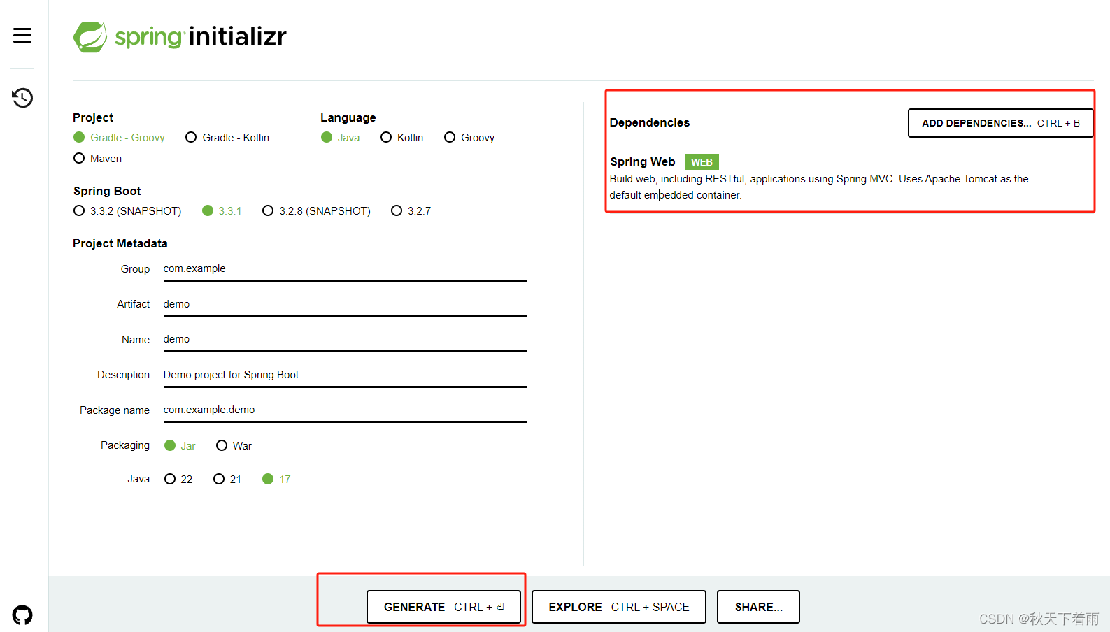 填写好信息点击下方GENERATE按钮会生成项目的压缩包:demo.zip。解压后可以用idea打开。