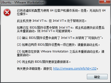 说明你的机器支持“Intel VT-x”,只是没有开始。安装 64 位的 Linux 需要启动这个功能。开启方法:到 BIOS 中设置启用 Intel VT-x。