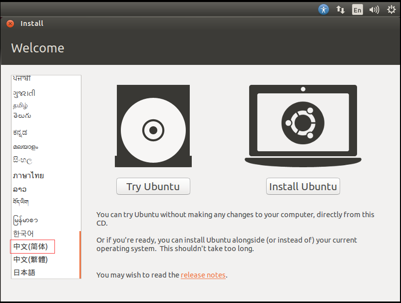然后就会来到如下界面,我们选择中文简体点击Install Ubuntu