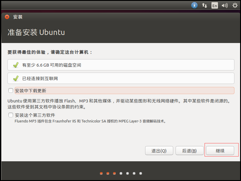 如果虚拟系统安装成功之后重启失败了(如停留在某个页面时间过长),手动重启Ubuntu即可