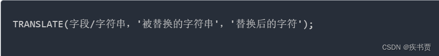 TRANSLATE函数是,将string中包含from_str中的每个字符替换为to_str中的对应下标字符后所得的结果集。TRANSLATE是REPLACE功能的超集。