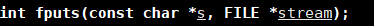 此函数传入的参数分别为要写入的字符串、待写入的文件流,调用此函数能向文件流中写入内容