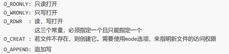 函数传入的参数为:文件路径文件名、打开文件的标识位、(打开的文件的权限)