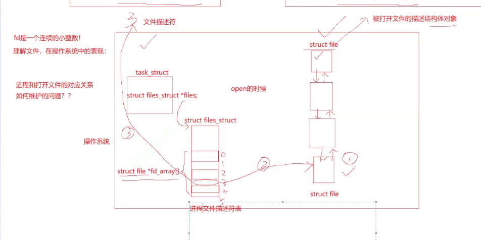 1. 文件被打开后,操作系统生成struct file,将其管理起来