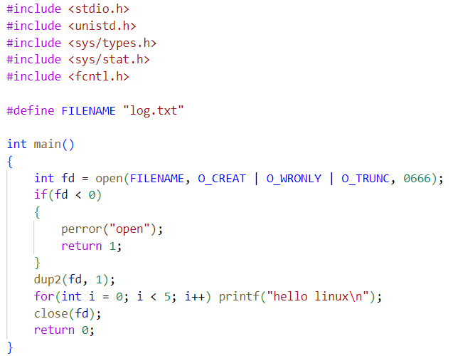 对dup2函数有了基本的了解之后,我们要做的事就是快速上手把它用起来!为了更好地展示出效果,我们对标准输出函数进行重定向。