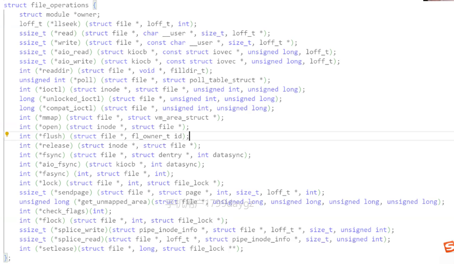 可以看出,这实际上就是一批函数指针的集合,通过这些个函数,进程就能实现对文件的种种操作