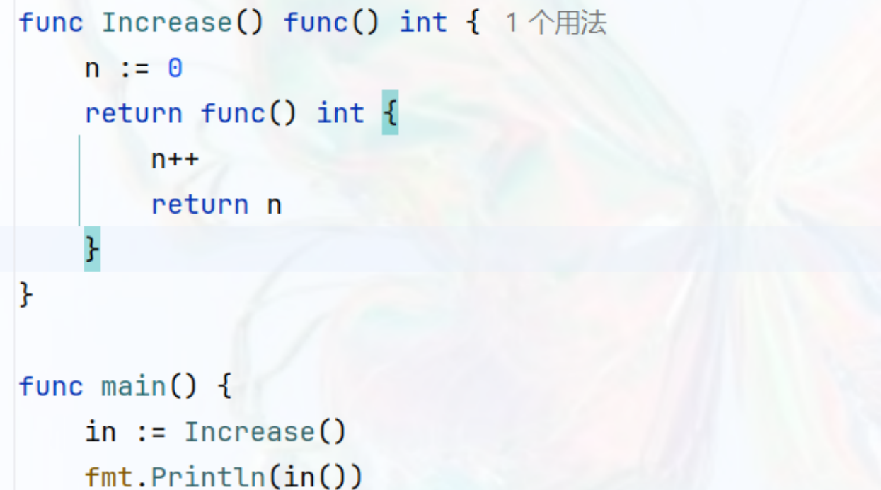 Increase() 返回值是一个闭包函数,该闭包函数访问了外部变量 n,那变量 n 将会一直存在,直到 in 被销毁。很显然,变量 n 占用的内存不能随着函数 Increase() 的退出而回收,因此将会逃逸到堆上。