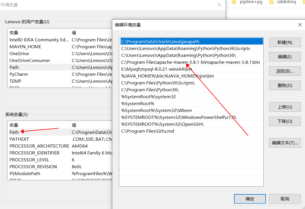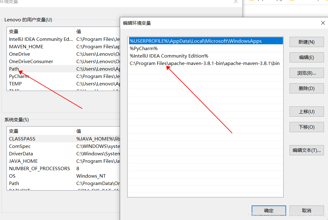 3.在path中添加maven的bin文件夹的绝对路径
