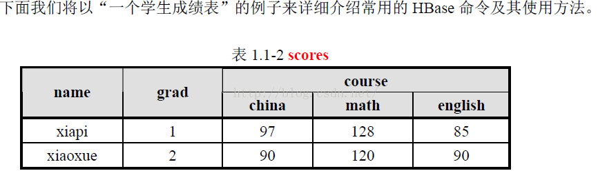 查看表中列簇所有数据: scan 'scores',{COLUMNS=>'course'}
