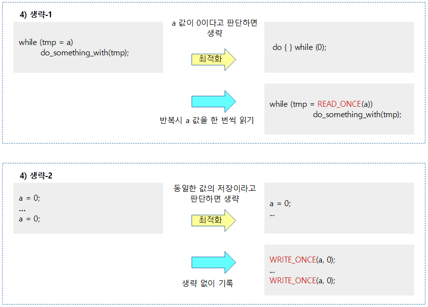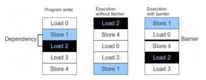 - barrier() restricts previous and subsequent memory accesses from being reordered by the compiler's optimizations.