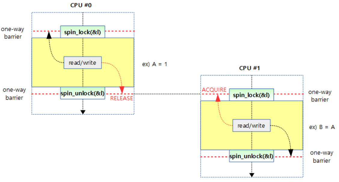 - A one-way barrier guarantees the memory manipulation order before the RELEASE operation.